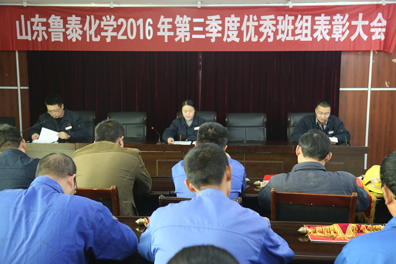 11月14日,鲁泰化学在公司三楼会议室召开2016年第三季度安全标准化班组建设总结会议。公司副总经理吴艳蕊出席会议,并对优秀班组进行表彰奖励。