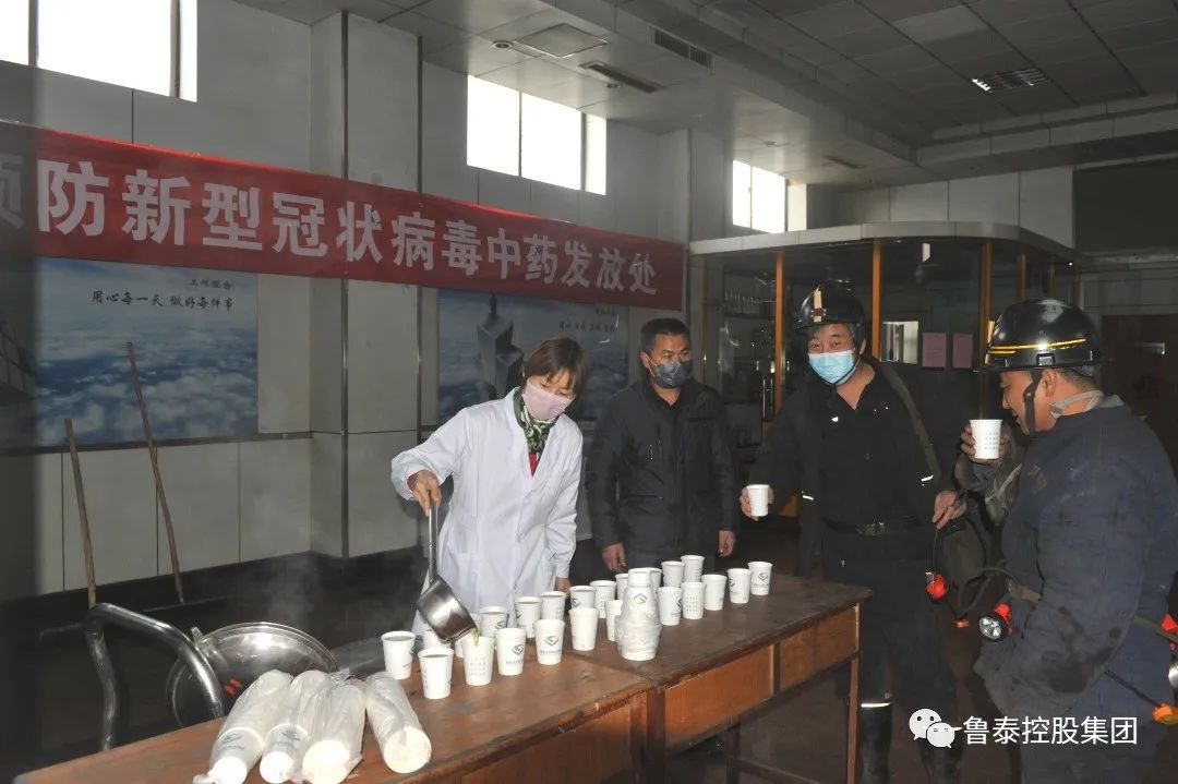 根据山东省卫生健康委员会针对冬春流感、新型冠状病毒感染的肺炎研制的中医药预防方案,为预防新冠肺炎病毒,增强职工免疫力,专门为职工熬制了中药汤剂,在矿大门口和副井井口免费发放;为职工发放餐杯,要求职工排队打饭间距必须一米以上,禁止聚集用餐,切断疫情传播途径;为职工发放体温计,便于职工上班期间测量体温,每天为上班职工发放口罩,严格落实上岗人员全程佩戴口罩疫情防控措施,降低疫情对职工健康带来的风险。