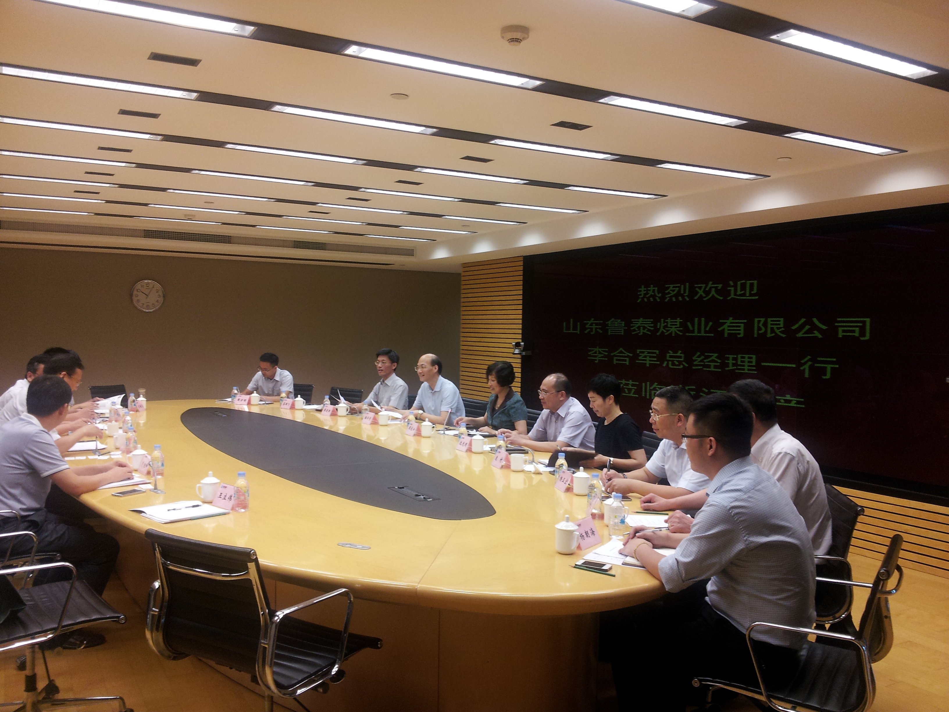 8月5日上午,公司总经理李合军带队,公司人力资源部、财务部、运销部、规划发展部、金威煤电等相关负责人一行6人赴浙江省物产集团调研考察,并就双方合作事宜进行探讨交流。浙江物产集团总经理周冠女、副总经理沈光明,浙江物产化工集团公司董事长庞村、副总经理蔡群飞,浙江物产能源股份公司董事长潘许芳、总经理杨正宏等领导陪同考察。
