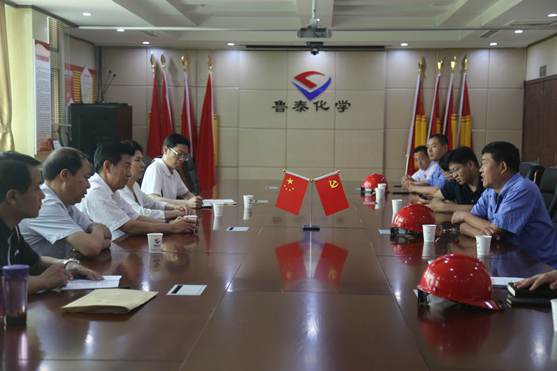 6月7日上午,济宁政协副主席王建华一行5人来鲁泰化学督导全省安全生产综合整治大行动期间的安全生产工作。鱼台县政协主席郭亚莲,鲁泰化学公司董事长、党委书记张玉标,总经理、党委副书记李宝瑞等陪同检查。